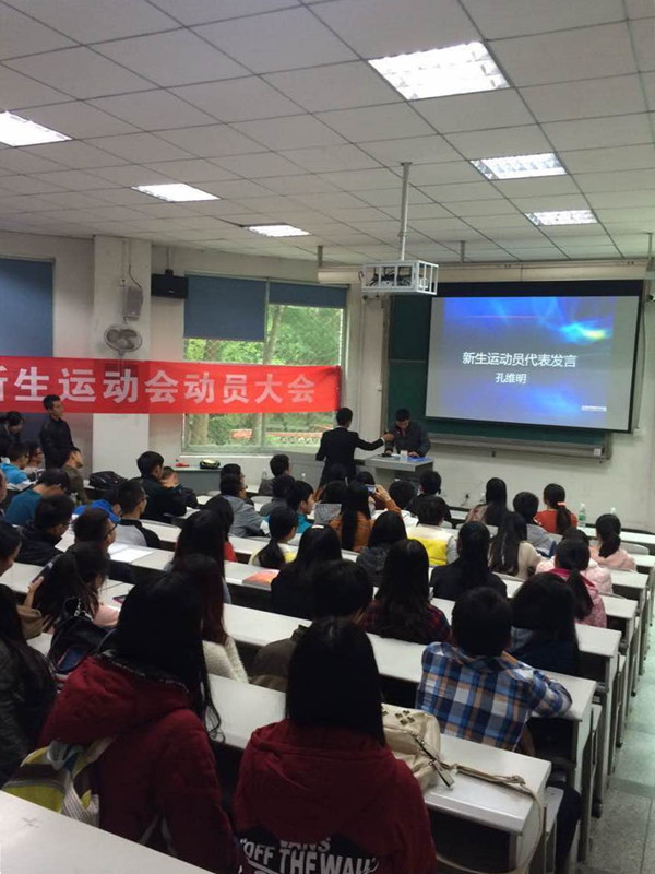 11月4日中午12:00,能源与环境学院2014级新生运动会动员大会在4A105顺利召开。学院团委书记余莎莎、各专业辅导员、部分学生会成员及全体新生运动员参与了本次动员大会。