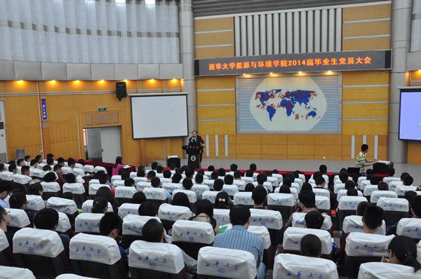 5月8日上午10点,能源与环境学院2014届毕业生党员大会在四教报告厅召开。能源与环境学院党委书记兼副院长赖喜德、党委副书记兼副院长王莉等党政领导、2014届毕业班辅导员以及毕业生党员参加了大会。