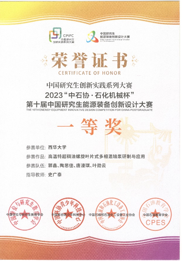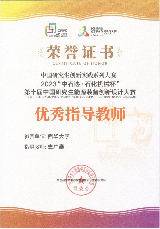 9月17日,“中石协▪石化机械杯”第十届中国研究生能源装备创新设计大赛全国总决赛在中国石油大学(华东)落下帷幕,由我校伟德国际1949副院长史广泰教授指导并带队,郭鑫、陶思佳、唐漫琪、叶勋云等4名研究生组成的“西华大学流体工程装备与技术创新团队”以优异表现,在全国200多所高校的1556支队伍中脱颖而出荣获全国一等奖,史广泰教授获得优秀指导教师。