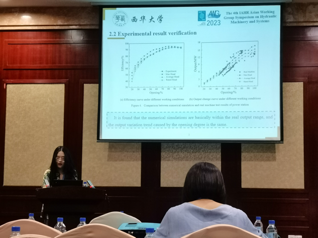 会议期间,卢加兴副教授受邀担任Smart grid and digital twin & Sustainable hydropower & Vibration and fatigue loading分会场主席,并在主会场进行了《Research on the unsteady flow characteristics and pressure pulsations under part-load conditions in centrifugal pumps based on dynamic mode decomposition》的特邀报告,曾永忠副教授在分会场进行了《Numerical simulation and experimental study on sediment wear of movable guide vanes of high-head Francis turbines in muddy river based on discrete phase model》的报告,研究生李黎浩、尚琳敏、李燊慧围绕冲击式水轮机泥沙特性、水泵水轮机受力特性和混流式水轮机尾水管涡流特性进行了论文报告和研究成果分享。