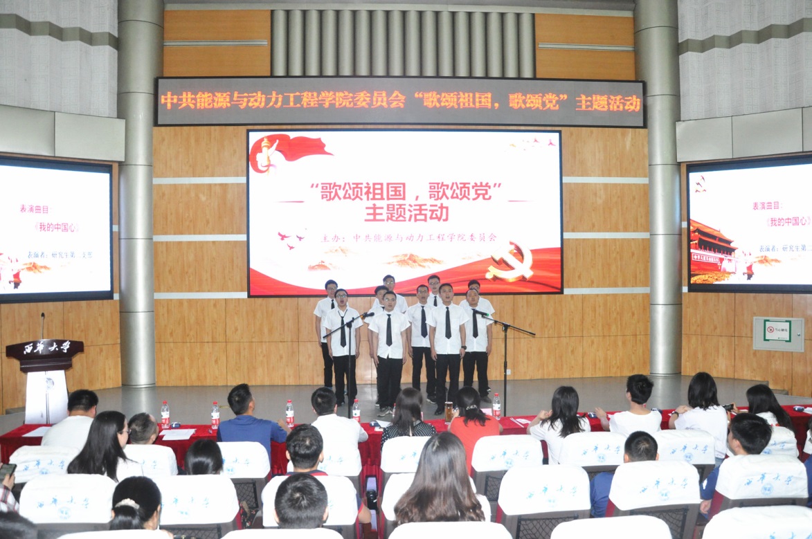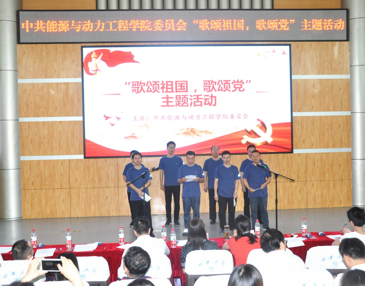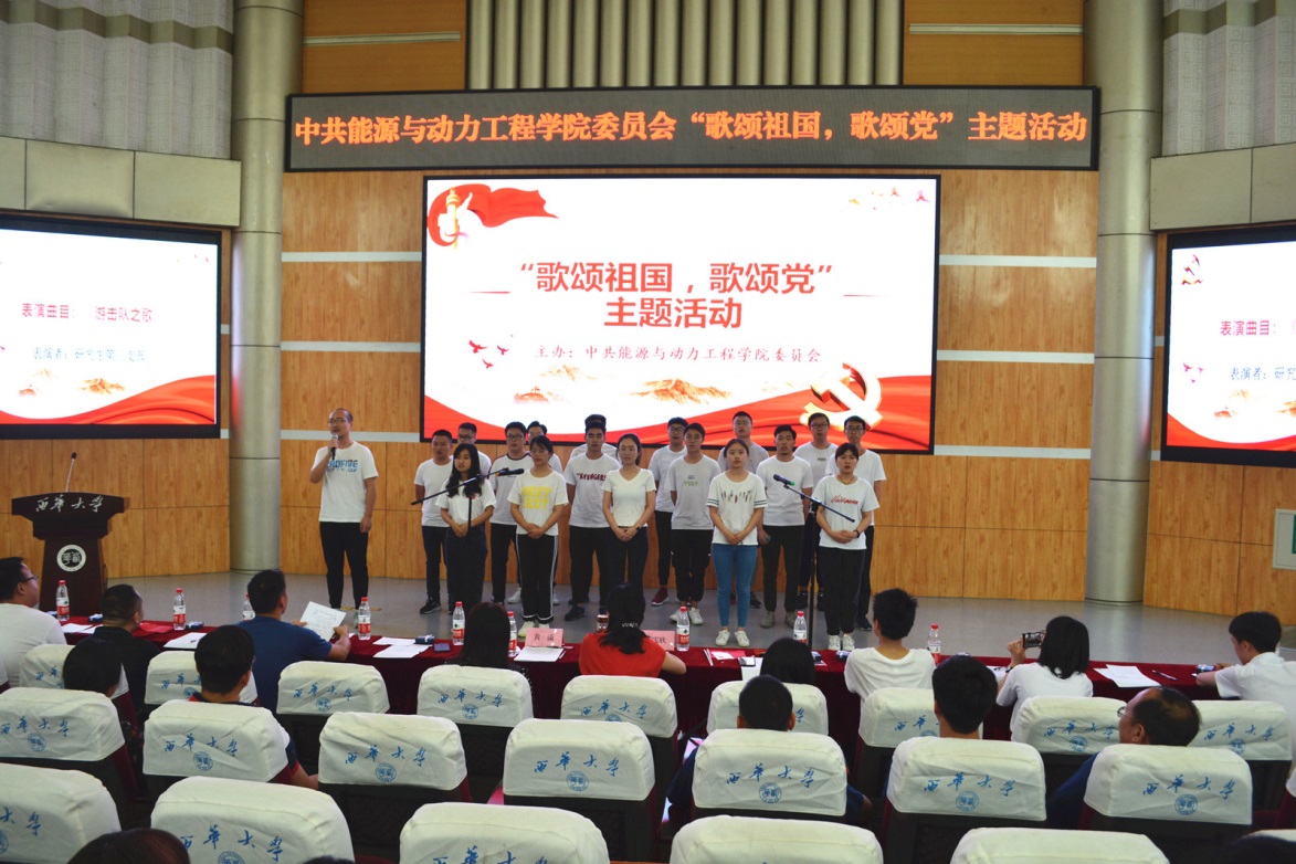 本次活动以党支部为单位,共有10支队伍参加了比赛。各参赛队伍选取了《我爱你中国》、《长江之歌》、《我和我的祖国》、《我的中国心》、《游击队之歌》、《没有共产党就没有新中国》、《中国,中国,鲜红的太阳永不落》等歌颂祖国、歌颂党,展现当代大学生青春精神风貌、充满青春正能量的歌曲参加比赛。评委们从歌曲的选择、演唱表现、精神面貌等方面进行了综合评判,最终水利水电工程学生二支部获得一等奖,教工第一党支部和第二党支部联队、研究生第一党支部获得二等奖;研究生第二党支部、研究生第三党支部、能源与动力工程学生二支部获得三等奖。