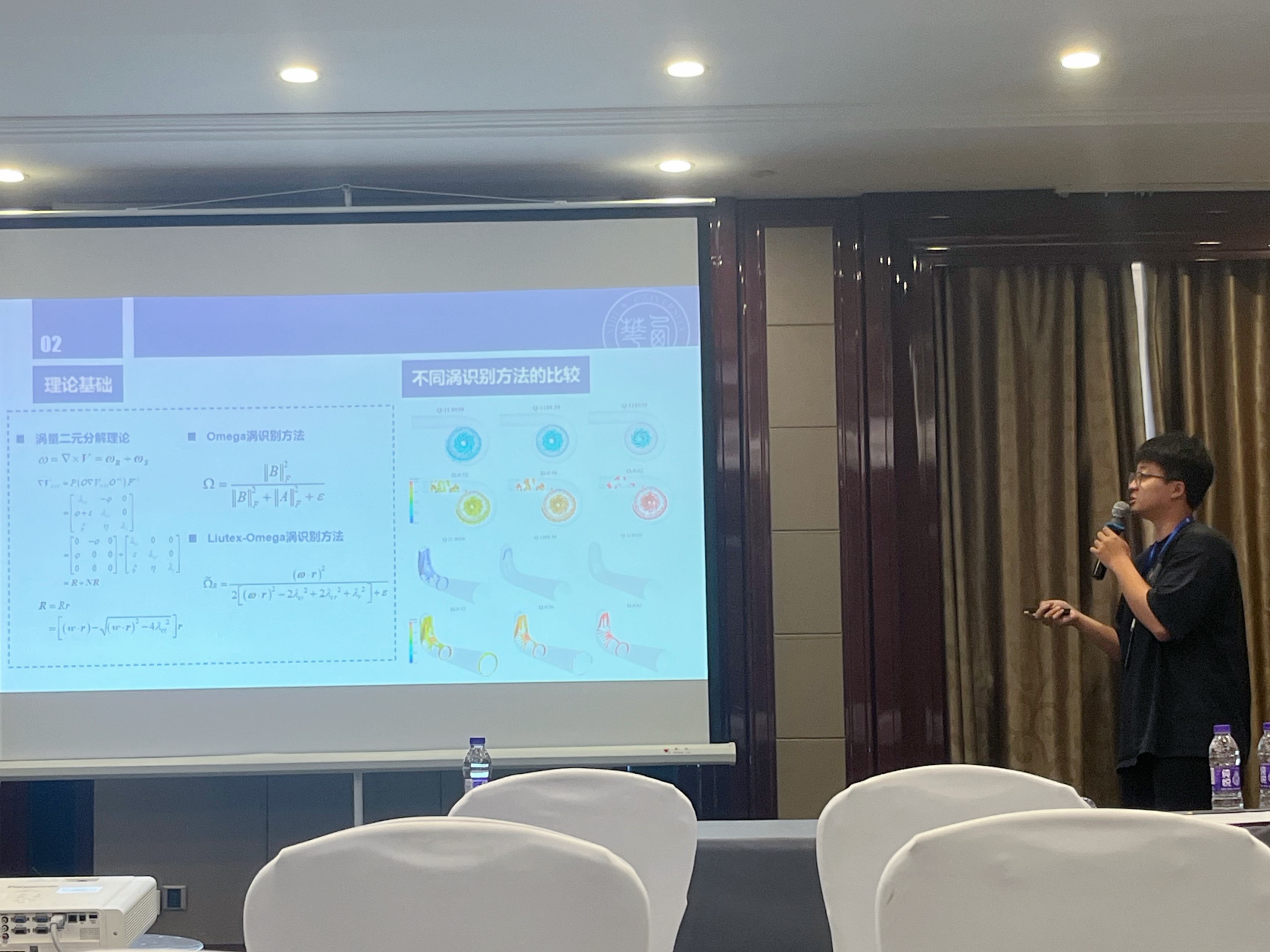 本次会议共有6个大会特邀报告,33个国家自然科学基金项目进展报告、7个特邀学术报告以及31个分会场主题的论文报告。会议期间柴红强博士在分会场作了《液压碎石器内部气穴可视化分析》报告。研究生郭鑫、唐漫琪针对混输泵内的复杂流动问题分别从泥沙磨损特性和能量转换特性做交流汇报,郝政凯、叶勋云针对水泵水轮机“S”区域从涡流特性和泥沙磨损特性做交流汇报。