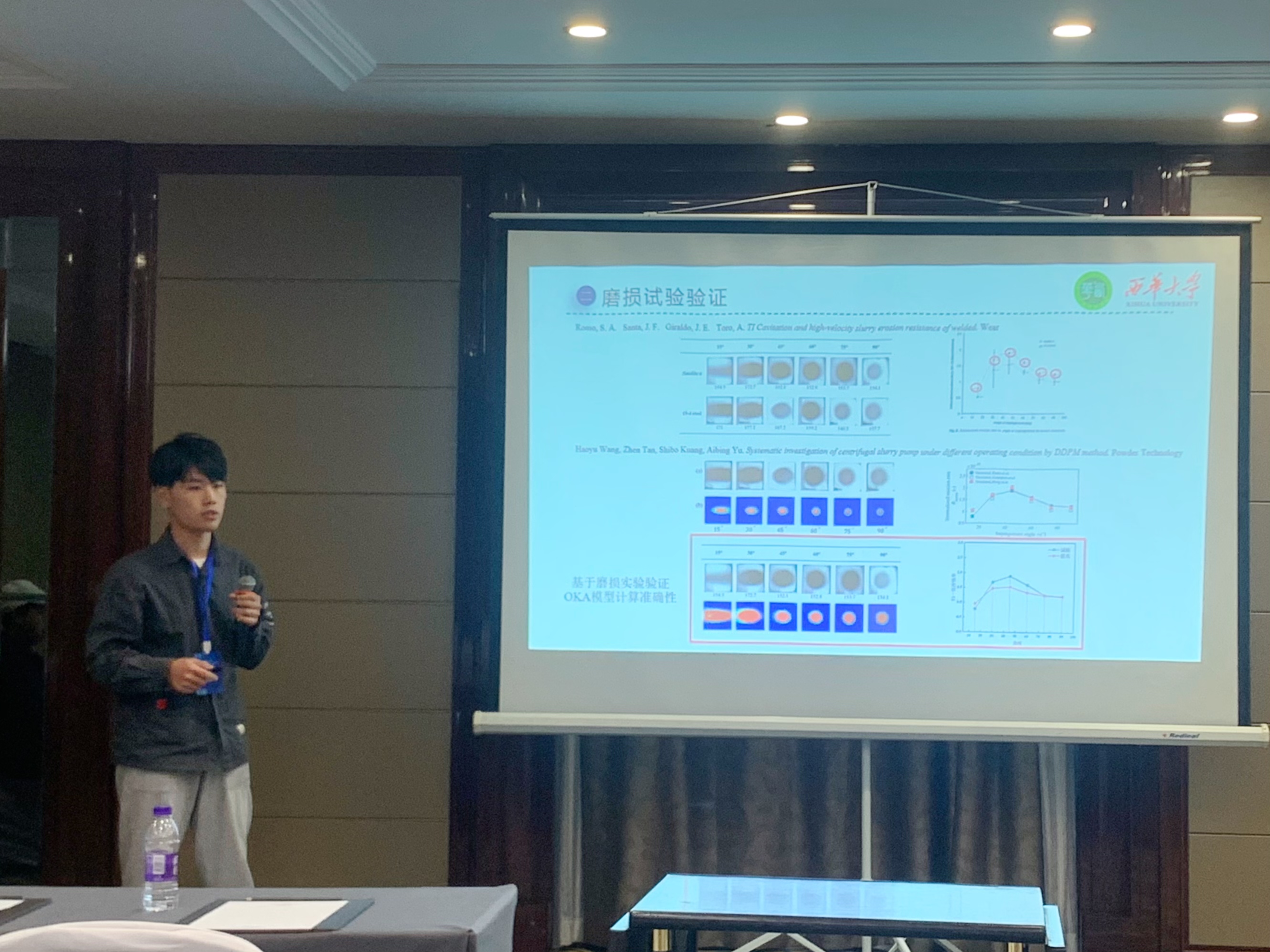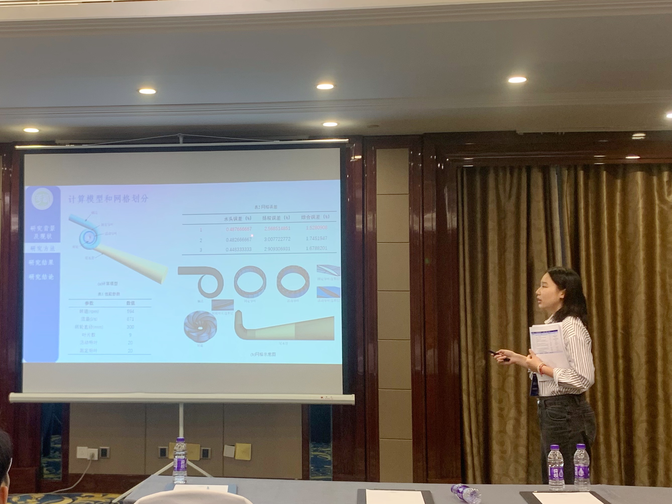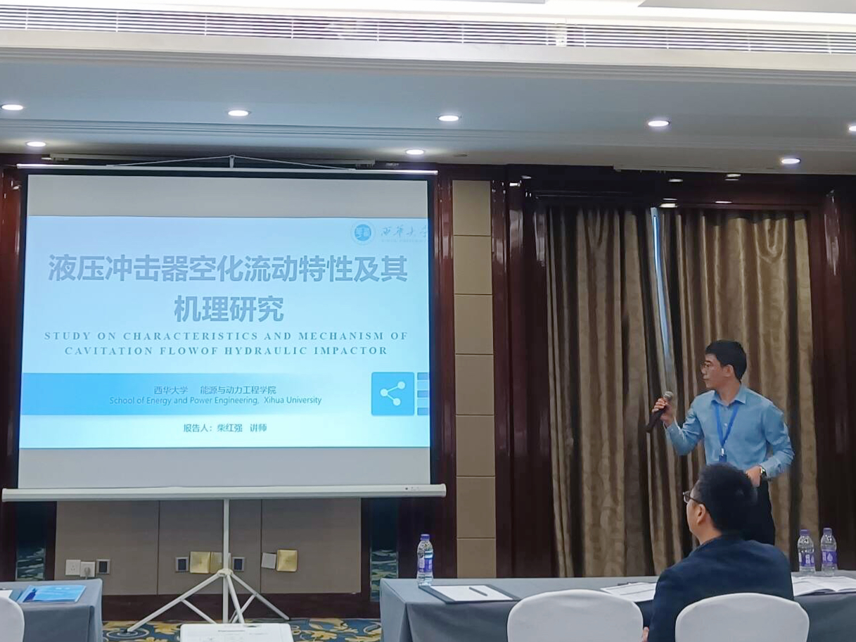 本次会议共有6个大会特邀报告,33个国家自然科学基金项目进展报告、7个特邀学术报告以及31个分会场主题的论文报告。会议期间柴红强博士在分会场作了《液压碎石器内部气穴可视化分析》报告。研究生郭鑫、唐漫琪针对混输泵内的复杂流动问题分别从泥沙磨损特性和能量转换特性做交流汇报,郝政凯、叶勋云针对水泵水轮机“S”区域从涡流特性和泥沙磨损特性做交流汇报。