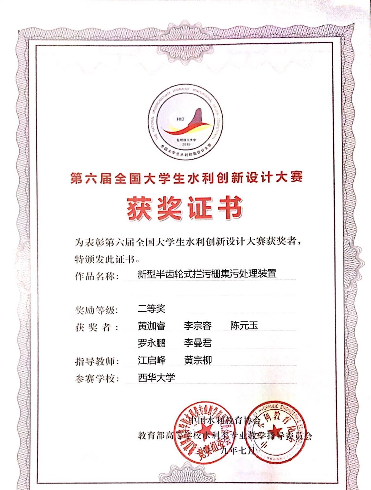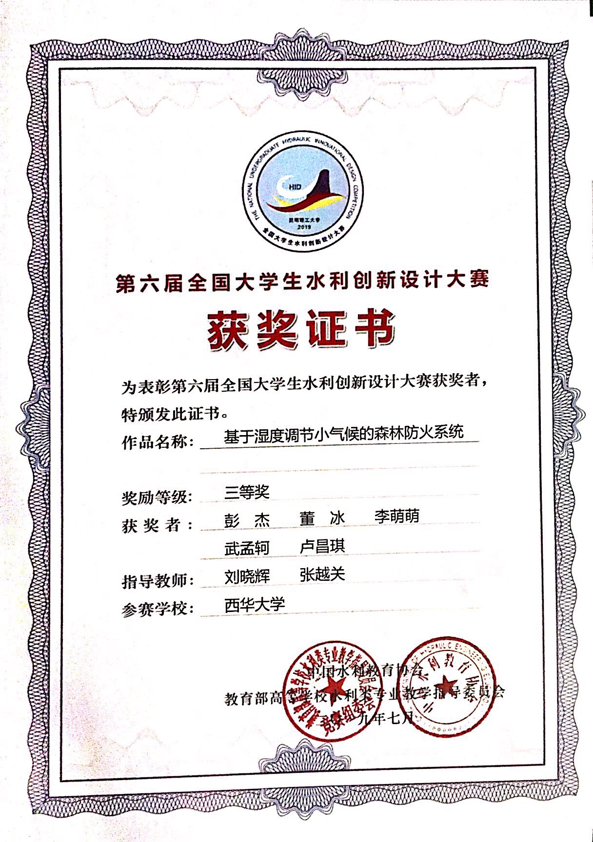 7月14日—17日,由教育部高等学校水利类专业教学指导委员会、中国水利教育协会高等教育分会主办的第六届全国大学生水利创新设计大赛在昆明理工大学举行,我校参赛的3件作品获得一等奖1项、二等奖1项,三等奖1项。
