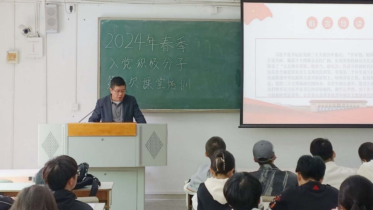 4月10日,伟德国际1949党委书记徐元彬在3C202为2024年春季学期党校入党积极分子培训班学员讲了第一次党课,本次党课的主题为《争做新时代好青年,书写青春奋斗答卷》
