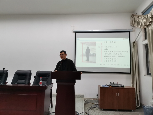 2019年12月5日下午,伟德国际1949在1-B201教室举办了以“产业发展趋势以及大学生就业形势分析”为主题的西华讲堂。本次讲堂邀请了现任沐盟集团分公司首席投资分析师、副总经理的朱冕君,伟德国际19492020届毕业生和团委学生会全体成员参加此次活动,讲座由学院就业联系人、毕业班辅导员肖寒月主持。