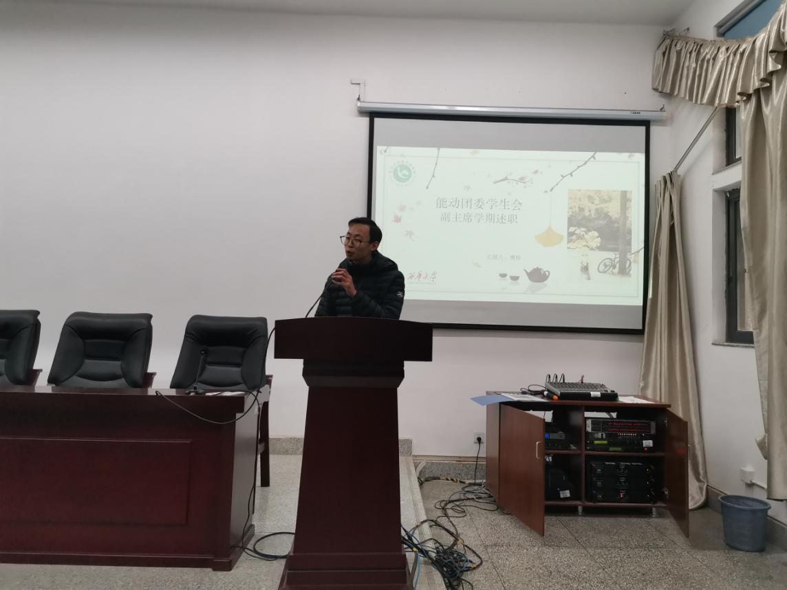 组织部部长邓世祥总结,对组织部过去一年的团组织生活,团日活动进行了简要概括,同时对工作完成情况及工作上的不足进行了总结。对未来也做出了合理规划。新媒体运营中心副部长马徐珍在年终总结报告中概述了部门在本年度的工作,从映月灯会、三下乡再到美寝大赛,宣传工作的成绩优异。在对来年的展望中也明确了工作目标,表达了一定能越做越好的决心。学术科创中心副主任杨钧凯对部门此年度工作情况进行了总结,虽在工作之中面临很多困难,但部门依旧迎难而上,取得显著的成绩。接着又对本部门工作进行了总结,提出自己的不足并进行反省。