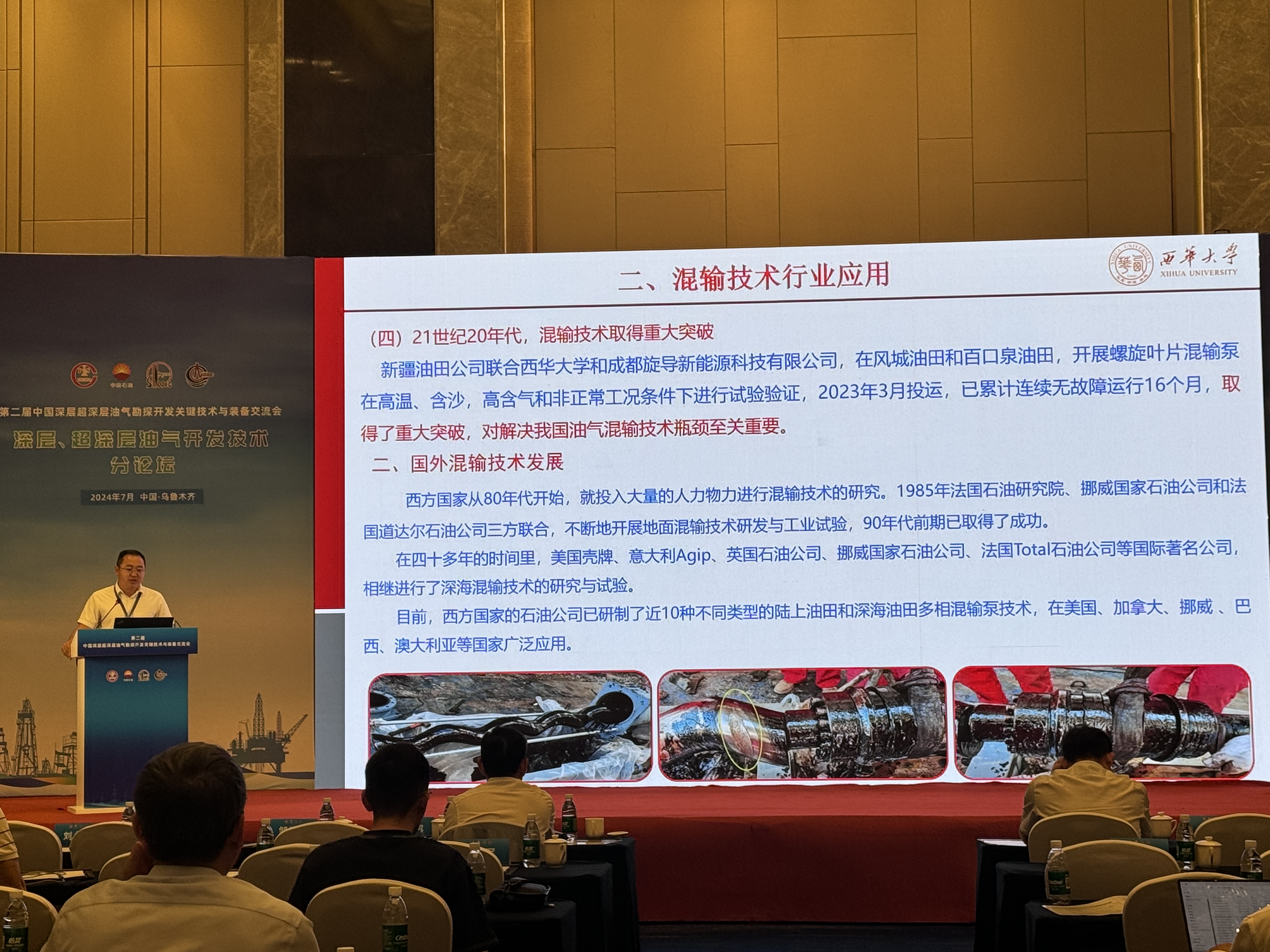 史广泰教授在会上作了题为“螺旋叶片式混输泵与工程应用”的专题报告,报告得到了与会专家的广泛关注与好评。通过此次会议向业内展示了我校的科学研究成果与水平,也向与会专家介绍了西华大学。