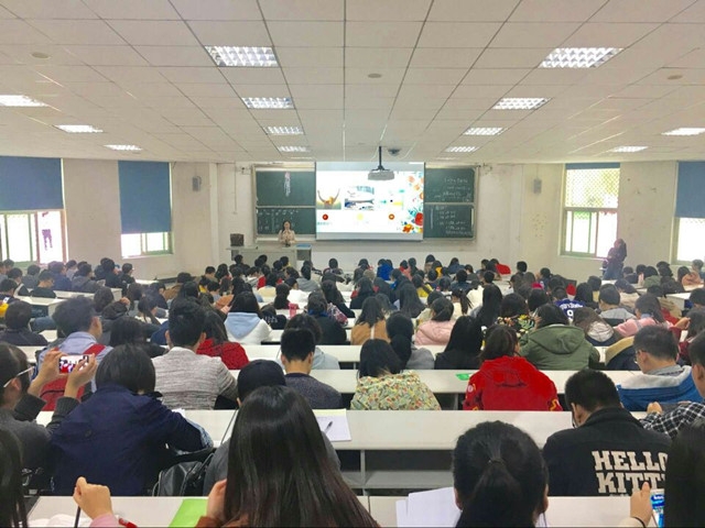 在讲座开始之前,现场出现了一点小插曲——电脑出现了问题,张老师顺势利用这个小插曲与同学们进行了交流,并引入到本次讲座中心内容:对大学环境不适应所产生的心理健康问题。讲座开始后,张老师首先列举出了不能适应新环境同学所表现出的烦恼。张老师指出,压力从成长、学习、人际中产生,而这压力又会导致如空虚、迷茫、自卑、孤独、焦虑等情绪反应。张老师还向同学们介绍了几种常见的情绪表达方式。
