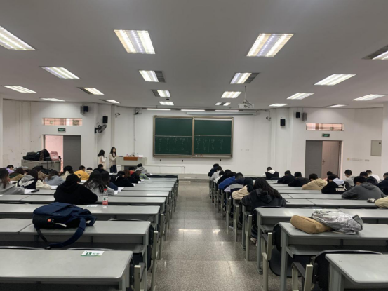 由本次由党校指导老师李亚东、党校班长唐漫琪和副班长宋小娟监考。考试之前,李亚东讲解了考试的相关规则,强调考试纪律,并希望入党积极分子以专注、认真的态度对待此次模拟考试,认真审题,查漏补缺。考试期间,学员们埋头苦干,将近期党课教授内容和自主学习知识整合归一,展示在此次的试卷上。半小时后入党积极分子开始陆续交卷……考场秩序井然,直至考试结束,无任何作弊现象。