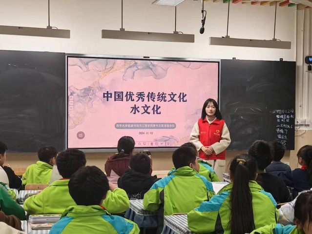 志愿者们以水文化为主题,从水与中华文明的渊源、水文化与现代生活以及保护和传承水文化这三个方面带领同学们了解中国传统文化的历史和魅力。在宣讲过程中,志愿者向同学们介绍了历史故事,水利工程以及节日习俗中的水文化,同学们踊跃回答问题,还向志愿者提出内心的疑惑。志愿者也组织了飞花令游戏,旨在增强宣讲的趣味,并且增加了同学们的诗词储备量。