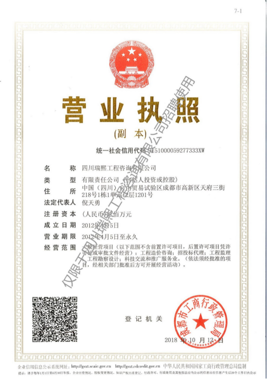 四川瑞熙工程咨询有限公司营业执照