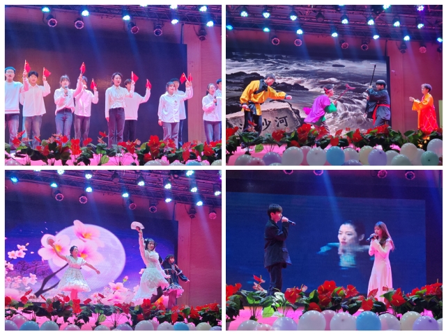 迎新晚会节目形式多样,精彩纷呈。歌曲演唱悠扬婉转,舞蹈表演青春韵律,小品表演幽默风趣。表彰环节,省优秀毕业生代表周俊、国家奖学金获得者代表俸耀金都分享了满满的学习、竞赛“干货”,他们用自身经历激励着每一位新生,希望新同学们都能在大学努力学习、追逐梦想。