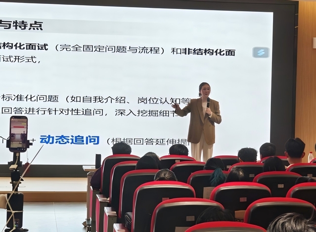 本次公开课的主题为“国企半结构化面试技巧与流程模拟”,由国家一级人力资源管理师白玫主讲,吸引了240余名学生到场参加。