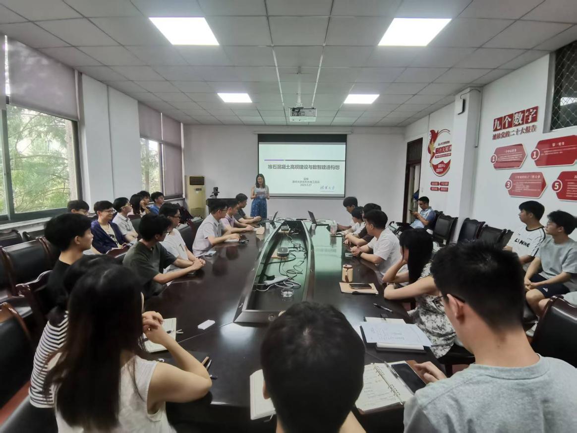 座谈会上,徐元彬书记对金峰教授一行表示欢迎。金峰教授首先介绍了团队的研究方向以及取得的创新成果,同时欢迎水利水电工程系青年教师加入到“堆石混凝土信息化”的工作中来。随后,双方围绕水利水电工程专业建设、学科发展和人才引进等方面展开了交流。最后,金峰教授给土木水利方向研究生以及部分大三本科生作了题为“堆石混凝土高坝建设与数智建造构想”的学术报告,让学生们再次深入地了解堆石混凝土以及堆石混凝土坝方面的前沿动态。