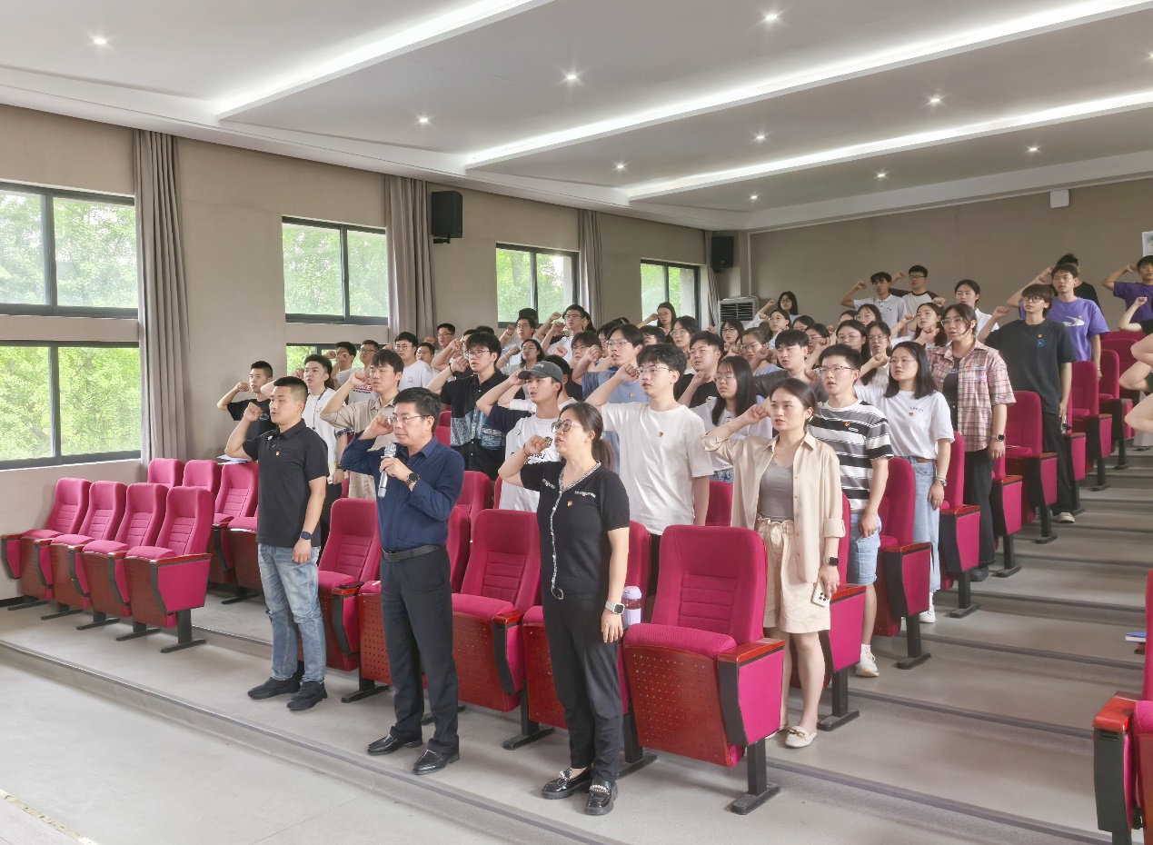 最后,徐元彬带领全体与会党员面向党旗,高举右拳,用宏亮激昂的声音重温了入党誓词。