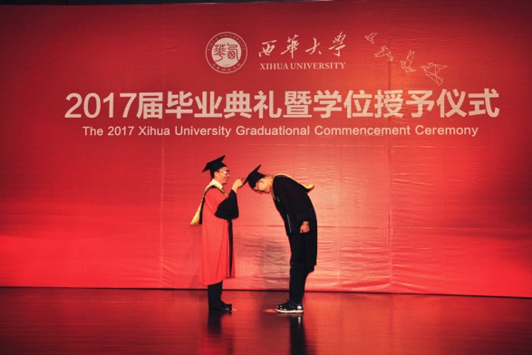 大学时光转瞬将逝。学校见证了学生们的成长成才,学生们把汗水与泪水挥洒在西华这片土地上,用足迹丈量西华。今天,当他们接受授位的同时,也接过了一份责任,一份回报家长、学校、社会和发扬西华精神的责任。