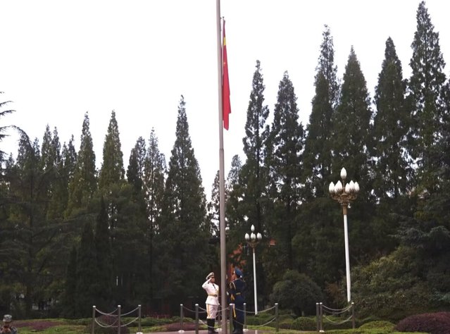 早晨6:45,同学们便已集合完毕,个个精神饱满,满怀期待地等候升旗仪式的开启。7:00,出旗仪式准时进行,护旗手们迈着整齐且铿锵有力的步伐,护送国旗走向升旗台。紧接着,升国旗、奏唱国歌环节拉开帷幕,在庄严雄壮的国歌声中,五星红旗缓缓升起,同学们面向国旗,行注目礼,高声齐唱国歌,浓浓的爱国之情在每个人心中涌动。