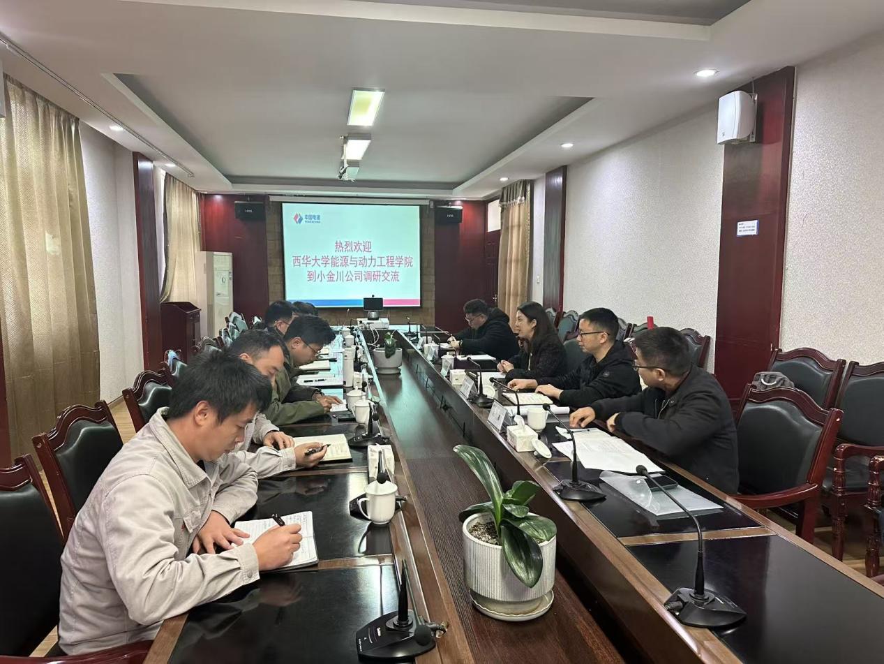 参观结束后,双方进行座谈交流。四川小金川水电开发有限公司总经理杨炳全首先介绍了公司整体情况。小金川公司成立于2009年12月,主要负责小金川流域3个常规水电站一个光伏聚能电站以及春厂坝抽水蓄能电站的开发建设和运营管理。目前公司已形成涵盖常规水电、新能源及储能三大板块,能够全面满足能源与动力工程专业储能方向师生的交流和实习需求。