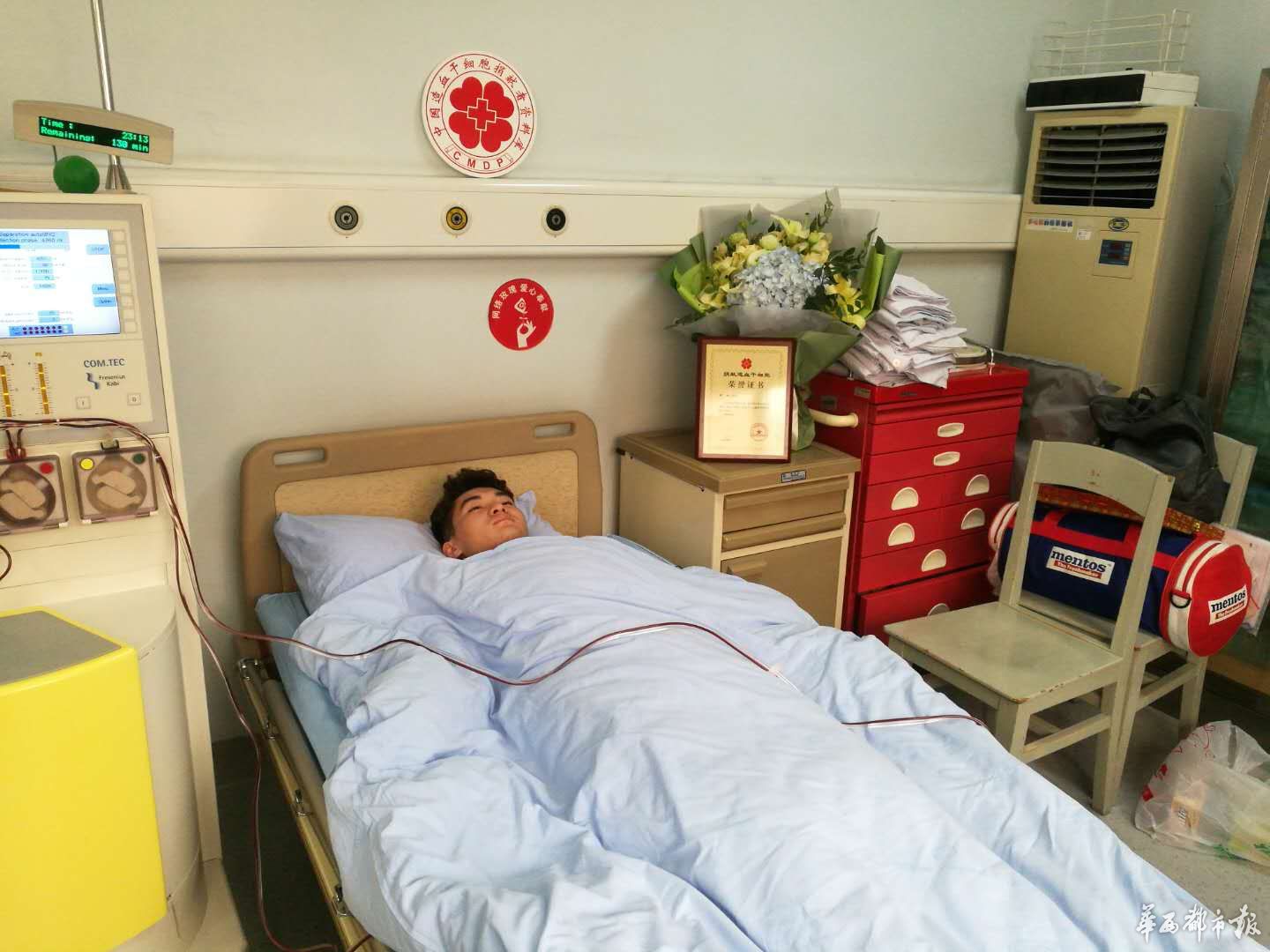 10月15至19日,郑奎每天都需要前往四川大学华西医院血液科注射一次动员剂,从而更好地采集造血干细胞。为了不耽误学业,他每天往返于学校与医院之间。