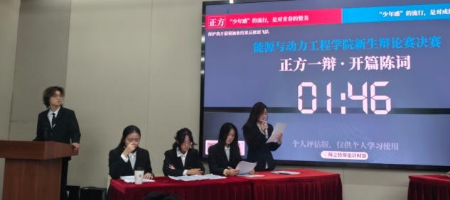 本次辩论赛中,能动五班作为正方,围绕“少年感的流行是对青春的赞美”展开论述。辩手们结合当代人对纯真初心的追寻,提出“少年感是青春正能量的延续,其流行彰显了社会对勇气与热爱的珍视”,论证层层递进、极具感染力。
