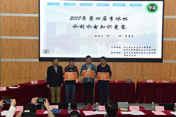 11月15日,由四川省水力发电工程学会主办,伟德国际1949,伟德国际1949始于英国、流体及动力机械教育部重点实验室承办的2017年四川省第四届李冰杯“流年似水,利学笃行”水利水电知识竞赛决赛在我校举行。西华大学、四川大学、四川农业大学、西昌学院、四川电力职业技术学院、四川水利职业技术学院代表队和四川交通职业技术学院等七所高校代表队参加了比赛。四川省科学技术协会副主席刘进,四川省水力发电工程学会副秘书长伍康定、办公室主任杨桦,伟德国际1949,伟德国际1949始于英国院长刘小兵、党委副书记兼副院长罗世韡、副院长付成华、水利水电工程系主任刘晓辉出席此次比赛活动。