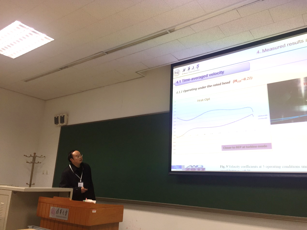 赖喜德教授应邀作题为 “Experimental Investigation of Flows in a High-head Pump-turbine Draft tube at turbine Mode ”的学术报告