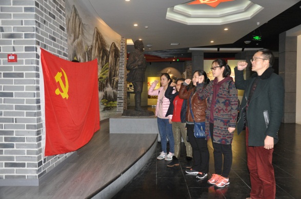 参观结束后,支部党员面对党旗,重温了入党誓词。“我志愿加入中国共产党,拥护党的纲领,遵守党的章程,履行党员义务,执行党的决定,严守党的纪律,保守党的秘密,对党忠诚,积极工作,为共产主义奋斗终身,随时准备为党和人民牺牲一切,永不叛党。” 短短数十字,彰显了共产党人的职责与使命,是一名共产党员对党的忠诚与承诺。