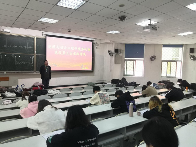 为了考察同学们为期三周的党校学习情况,帮助同学们更好地应对党校结业考试,学院于2021年10月26日在4A104开展了第47期党校入党积极分子培训第三次模拟考试。除一名学员因特殊原因未能参加外,其余48名党校学员都参加了本次考试。