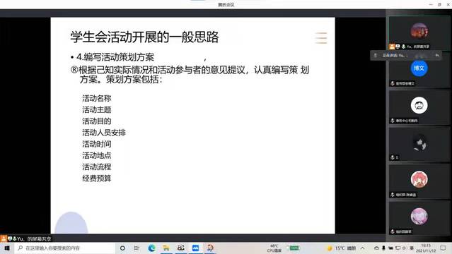 受近期疫情影响,11月12日下午4点,伟德国际1949线上举行了学生会干部培训大会。全体学生会成员参加了本次培训大会,学院团委书记古羽加主持会议。