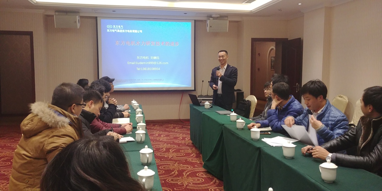 刘德民博士结合东方电机有限公司的特色水力研发技术、重大水电项目,讲述了东方电机有限公司在混流式水轮机、轴流式水轮机、贯流式水轮机及可逆式水轮机的水力研发技术,刘博士在报告中提出了自己的研究思路,并建议需要从“产、学、研、用”相结合来做研究。