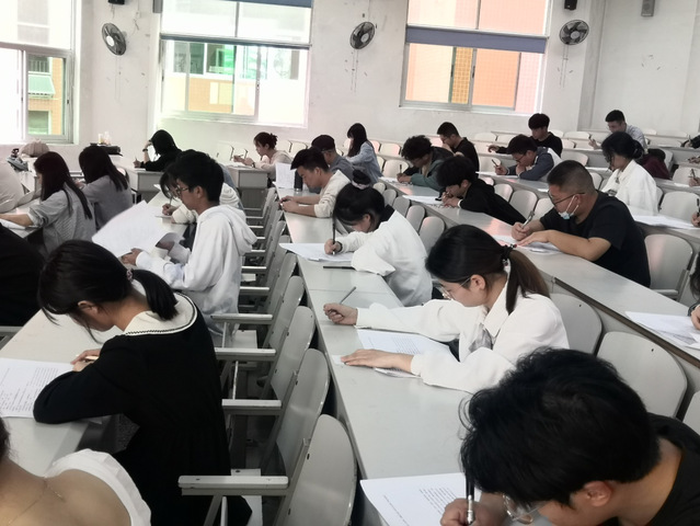 考试当天,只见各个班级推选的、符合条件的69名同学早早来到考场等候。协助监考的党校班长们也把工作安排的有条不紊:测体温、排座位、组织签到、强调注意事项。此次选拔摸底考试总时长50分钟。试题由单项选择题、多项选择题、填空题和简答题四大模块组成,考试内容涉及党的性质和宗旨、党的纲领和奋斗目标、党的纪律、党员的义务和权利,重点围绕党章党规党纪、入党流程、党的理论教育和党性教育等内容,旨在全方位、多角度、深层次检测学员对相关知识的了解和掌握程度。在考试过程中,协助监考的党校班长们态度认真、细心负责,参加考试的各位学员答题态度端正、落笔谨慎、考纪严明、氛围紧张有序。