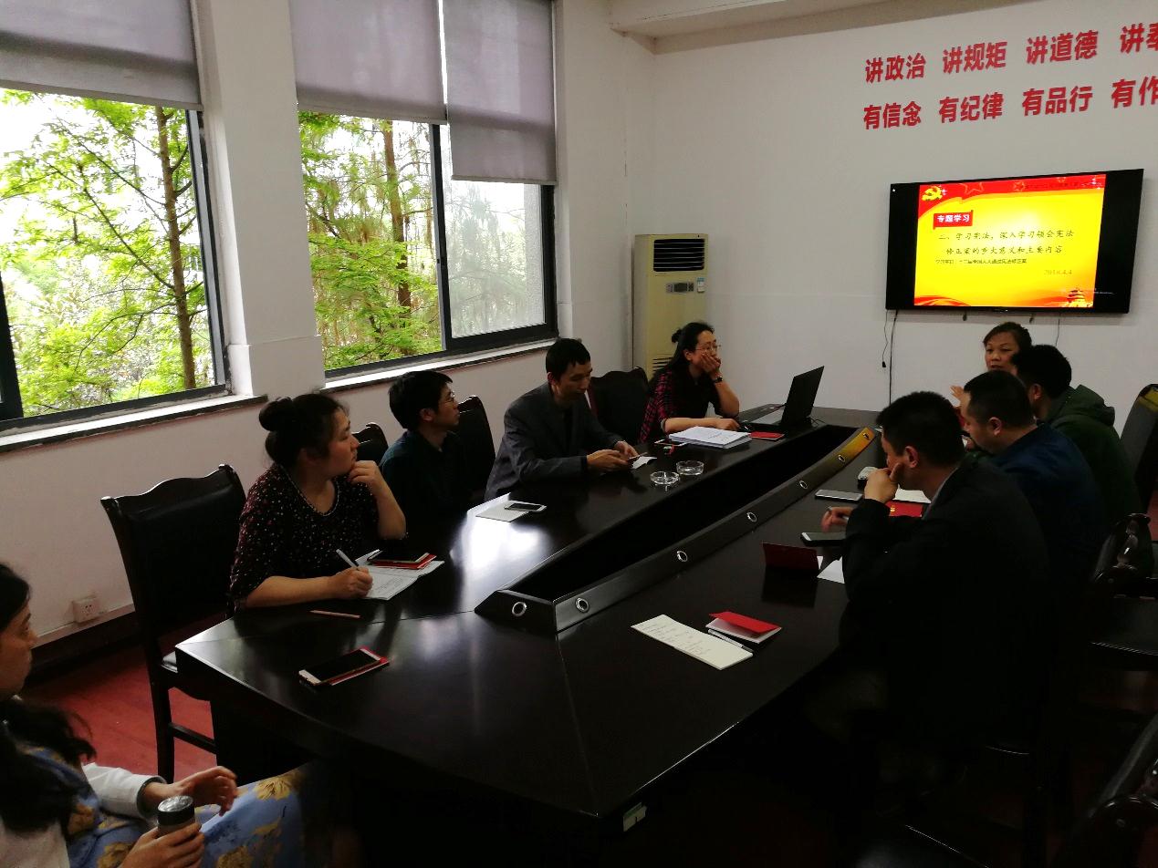 4月4日下午,教工第三党支部全体党员在1A-317党员活动室召开了“送党章·学党章·颂党章”以及“学习宪法,深入学习领会宪法修正案的重大意义和主要内容”专题组织生活会。