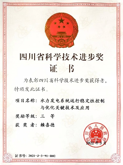 2021度四川省科学技术奖励大会于3月25日在成都举行。我校作为第二主要研单位的 “水力发电系统运行稳定性控制与优化关键技术及应用”项目获得2021度四川省科技进步三等奖,伟德国际1949赖喜德教授、陈小明讲师作为主要完成人喜获该项目个人奖。