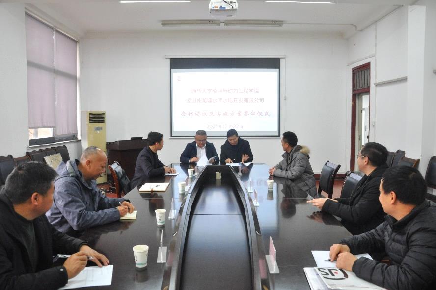 12月22日,伟德国际1949与凉山州龙塘水库水电开发有限公司校企合作签订仪式在西华大学一教321会议室举行。我院2000级水利水电工程专业校友、凉山州龙塘水库水电开发有限公司总经理罗雪,专职党委副书记沈兴明、安全总监赵春、人力资源部部长陈兴银,伟德国际1949院长李正贵、院长助理史广泰、实验中心主任邓万权、水利水电工程系系主任张焕敏以及学院相关专业教师出席了本次签订仪式。