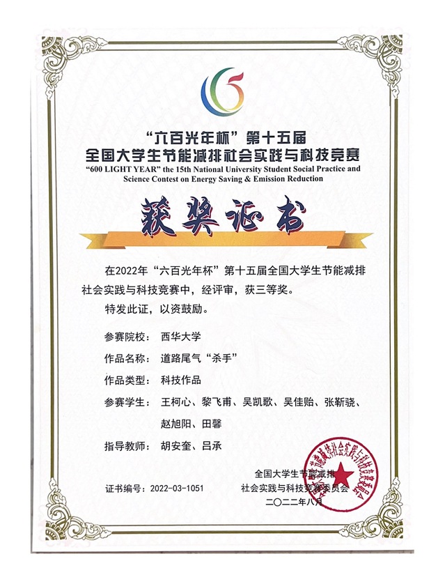 近日,由教育部高等教育司主办、教育部高等学校能源动力学科教学指导委员会承办的“六百光年杯”第十五届全国大学生节能减排社会实践与科技竞赛在天津大学举行。经过校级评选、专家评审等多个环节的激烈评选后,西华学子再创佳绩,荣获三等奖3项,伟德国际1949精心组织竞赛,表现突出,获优秀组织奖。
