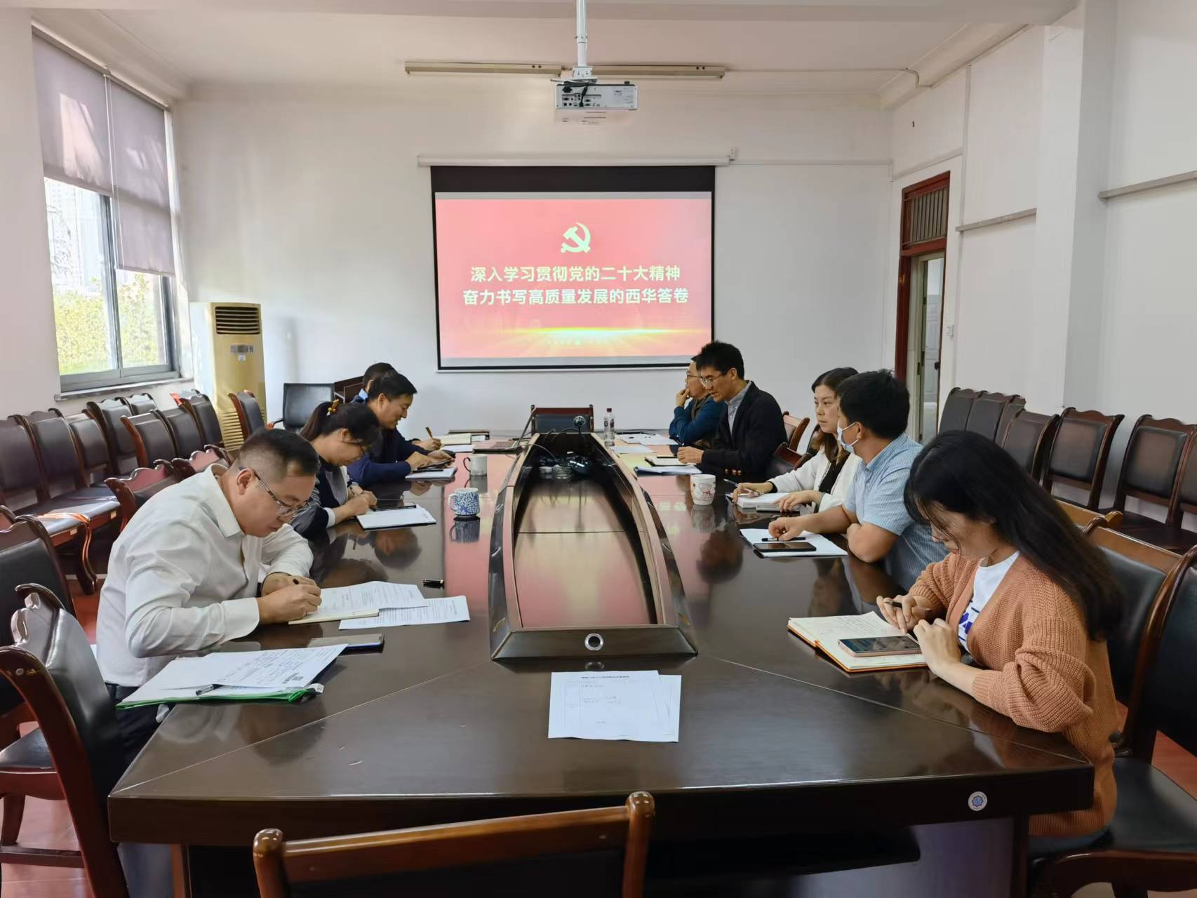 会议要求,要将学习宣传贯彻党的二十大精神作为当前和今后一个时期的首要政治任务,精心制定学习宣传贯彻方案,采取宣讲报告会、中心组学习会、教职工政治学习、“三会一课”、座谈交流会、学习研讨会、主题班团会等形式,迅速在全院掀起学习宣传贯彻党的二十大精神热潮,切实把学院师生的思想统一到党的二十大精神上来,激发广大师生为全面建设社会主义现代化国家、全面推进中华民族伟大复兴而团结奋斗。