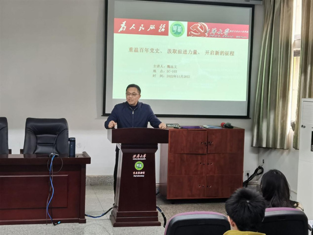 为进一步加深学院第49期党校入党积极分子培训班学员们对中国共产党百年党史的了解和掌握,进一步促进同学们对党的宗旨、党的发展历程、伟大建党精神以及党的二十大精神的深刻领悟,2022年11月24日,学院第49期党校专门邀请了学院正处级专职组织员、有着三十余年党龄的魏远文书记给学员们讲党课。此次老党员讲党课的主题为“重温百年党史,汲取前进力量,开启新的征程”。