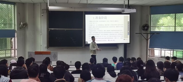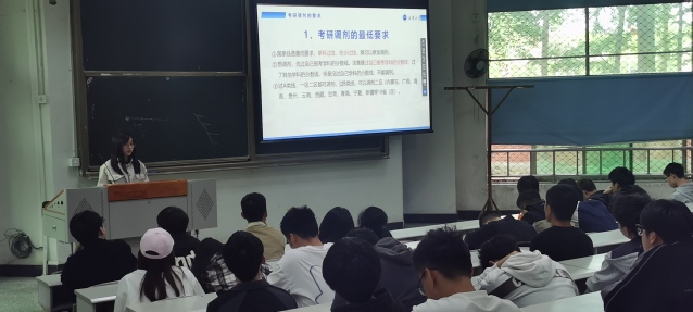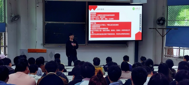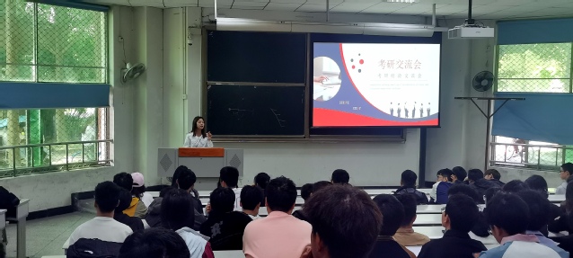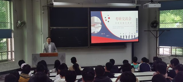 会议伊始,辅导员王希简要地说明了本次考研交流会的目的与意义。接着,2019级考研成功学生叶达顺、杜家祺、冯义池、曾杰依次结合PPT分享了考研上岸的宝贵经验。他们分别从考研院校、专业的选择,怎样复习统考科目,如何有针对性地复习专业课程,以及考研调剂应注意的相关事项等方面进行详细的经验分享;与此同时,学长、学姐们还反复强调在备考过程中坚持的重要性,自信、冷静也是考研复试关口顺利通过的关键。