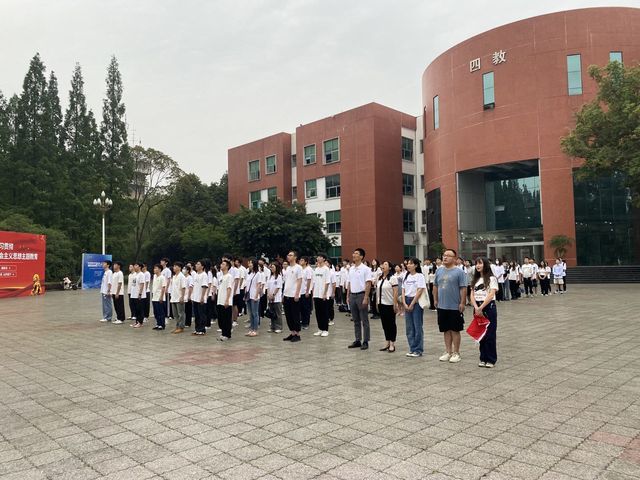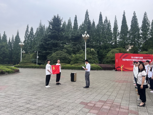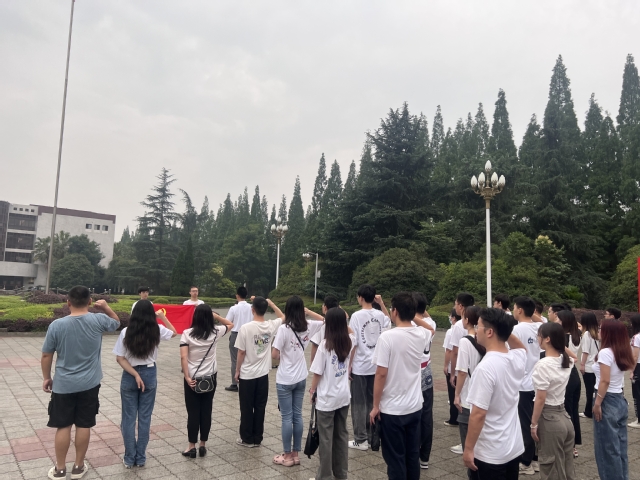 升旗仪式开始,五星红旗在国旗护卫队的护送下冉冉升起,全体人员高唱国歌,升旗结束后,全体党员面向党旗在学院党委书记江启峰的带领下庄重宣誓。最后江书记谈道,本次活动作为学院毕业生党员和新发展党员的一场主题党日活动,希望学生党员将理论联系实际,发挥党员的先锋模范作用,在今后的学习、工作、生活中成为一面鲜明的旗帜。