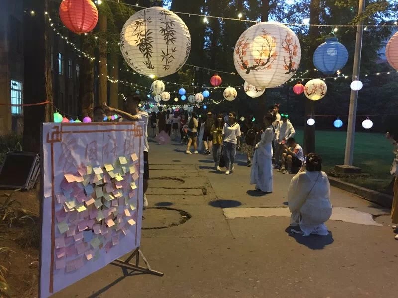 当晚的映月灯会集观赏性、娱乐性、学习性、参与性为一体,现场设置的游园游戏、猜灯谜,还有社团展示等吸引了师生的积极参与;DIY灯笼、灯谜和心愿墙等区域也有大批游园师生驻足欣赏与参与。值得一提的是,此次的灯会还将“学习强国”中的内容融入其中,灯谜的题目大多数出自“学习强国”APP,通过猜灯谜的方式,让更多的同学加入到学习的队伍中来,寓教于乐;设置“爱国强国”心愿墙,给师生提供了为伟大祖国母亲表达祝愿的场所。